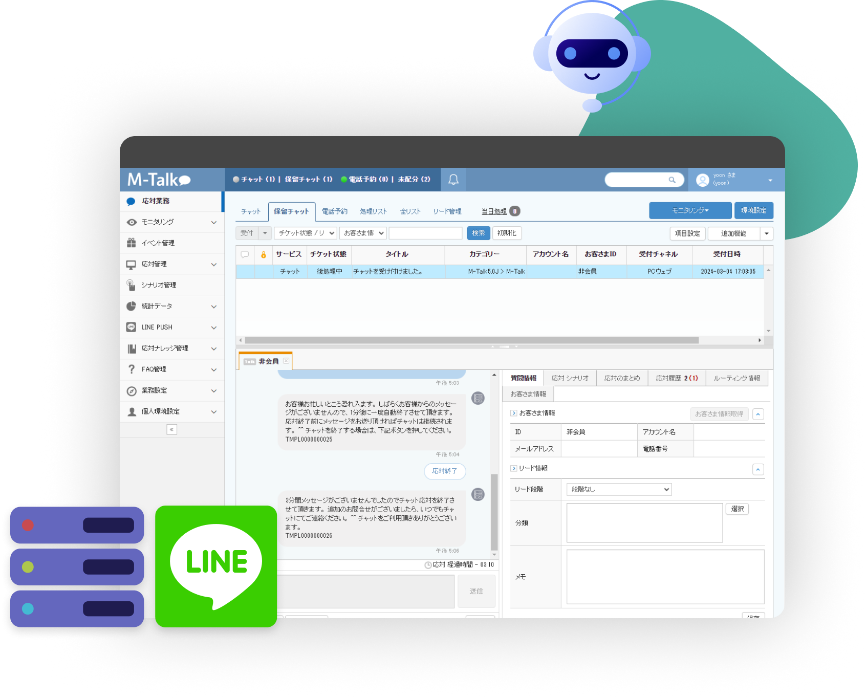 CRM 및 고객 DB와 협력, LINE 등의 모바일 앱 연계 표준 API 제공과 개별 커스터마이즈 대응 가능